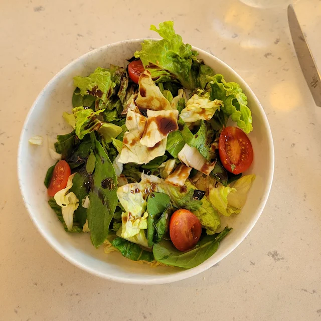 to get a plain green salad with balsamic dressing and pasta with tomato sauce.